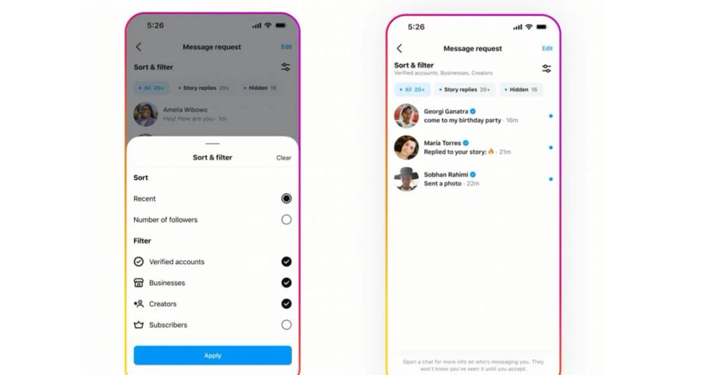 Instagram has added inbox filters that let you sort messages by category. Available filters include: Unread, Story Replies, Primary, General, and custom labels. Professional accounts and accounts with over 100,000 followers also have access to filters for Verified accounts and Follower status.