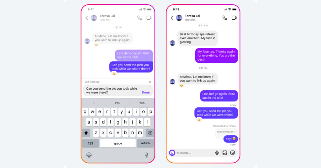 Instagram lets you edit a DM within 15 minutes of sending it. Hold down the message, tap Edit, make your changes, and confirm. The message shows an Edited label so the recipient knows it was changed.